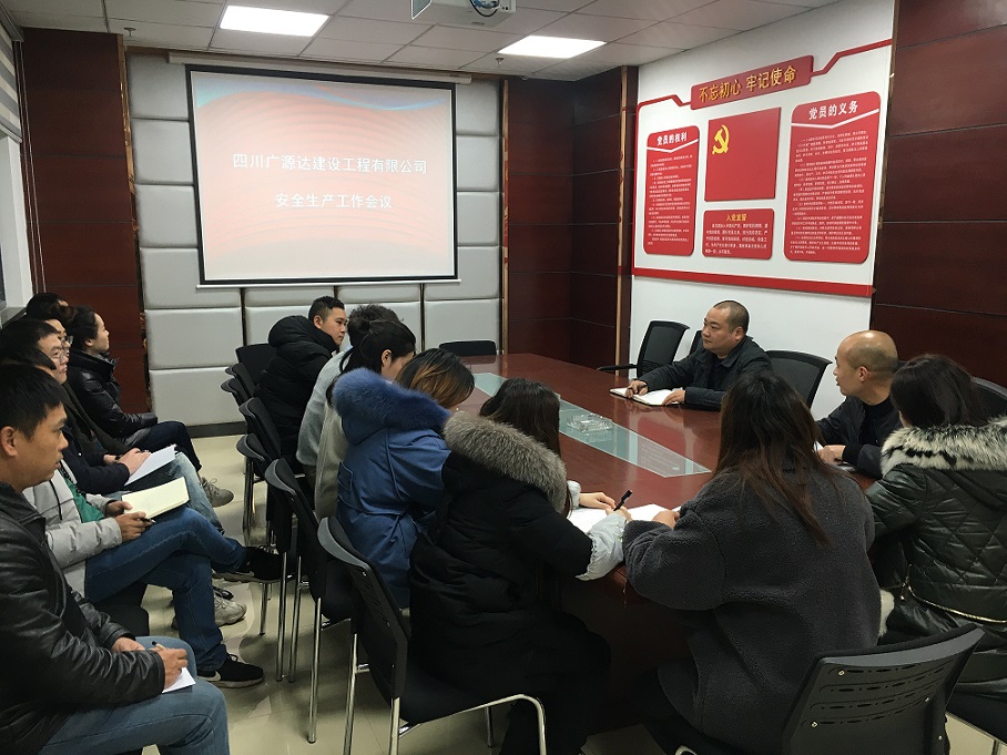 2019年12月31日,四川广源达建设工程有限公司谯棣升董事长主持召开全体员工安全生产工作会。