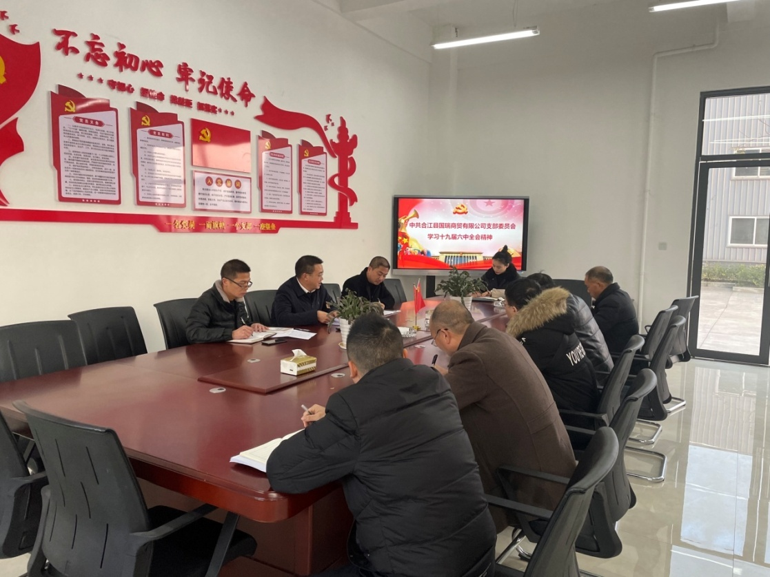 2021年12月21日,国瑞商贸党支部召开党员大会深入学习贯彻党的十九届六中全会精神,会议由党支部书记陈目科主持,全体党员、入党积极分子参加会议。