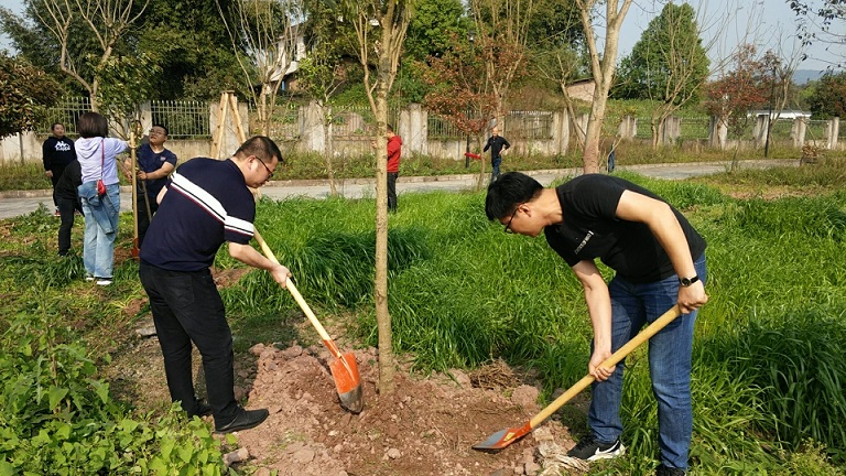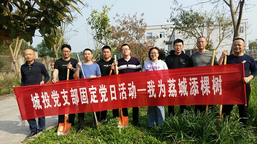 会后,全体党员开展了春季义务植树活动。