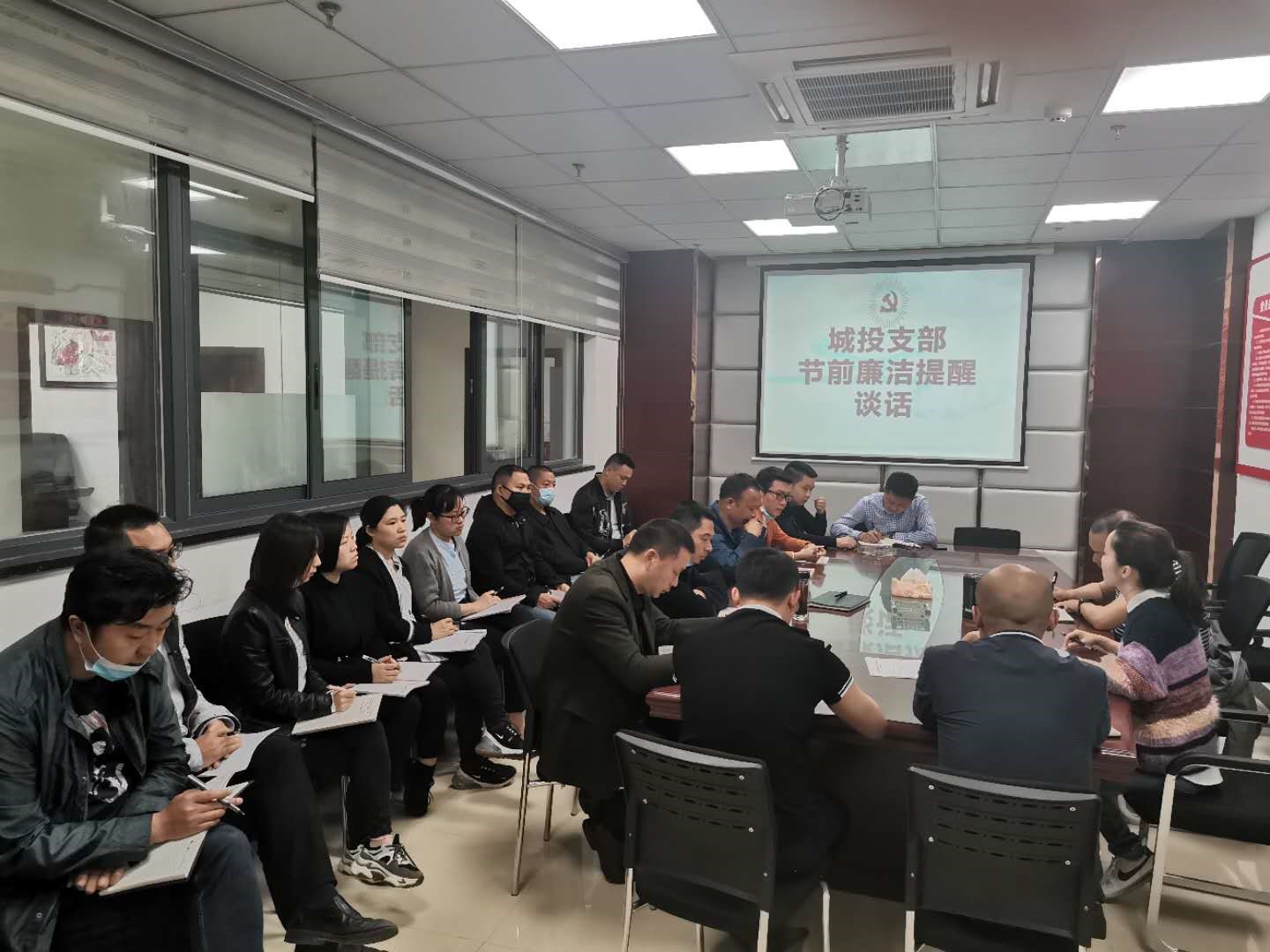 2020年5月22日,城投支部召集支部全体党员、中层及以上领导干部、重点岗位人员开展2020年度警示...