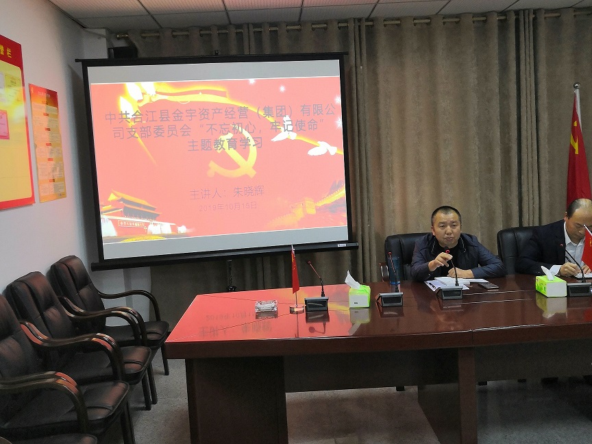 2019年10月15日合江县金宇资产经营(集团)有限公司开展“不忘初心、牢记使命”主题教育,坚持把学...