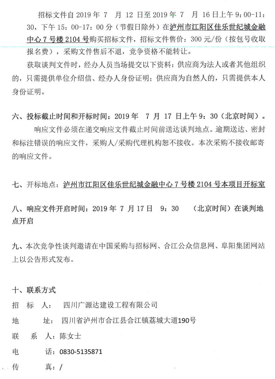 四川广源达建筑工程有限公司合江县变电站东侧道路货物采购公告(第二次)
