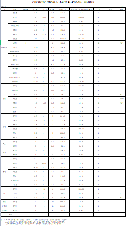 附 件 : 泸 州 汇 鑫 环 保 科 技 有 限 公 司 污 水 处 理 厂 2022 年 清淤项目询价报价表