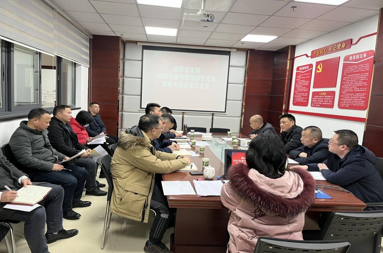 2022 年 2 月 23 日下午, 城投党支部组织召开 2021 年度 组织生活会并开展民主评议党员。 会议由党支部书记鞠志良 主持,全体党员同志参会。