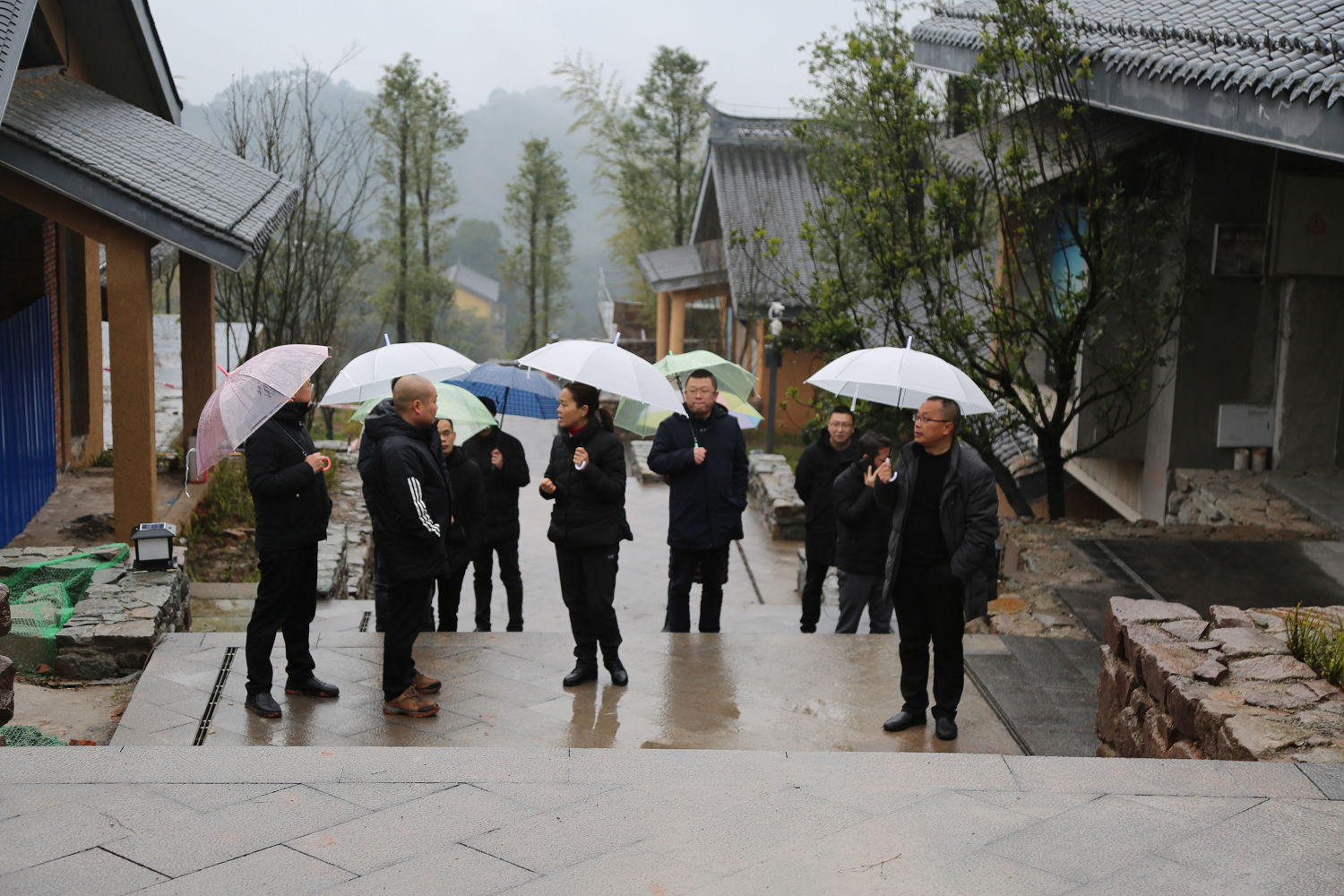 游启君一行先到景区天街进行现场勘查, 详细了解了景 区工程进度及预期运营方向, 随后在法王寺龙挂山景区—半 山云舍召开了座谈会。 会上, 集团公司领导对景区前期建设、 运营工作给予了充分肯定, 并鼓励文旅公司员工要继续铆足 干劲、整合力量来加快项目建设,力争早日全部投入运营。