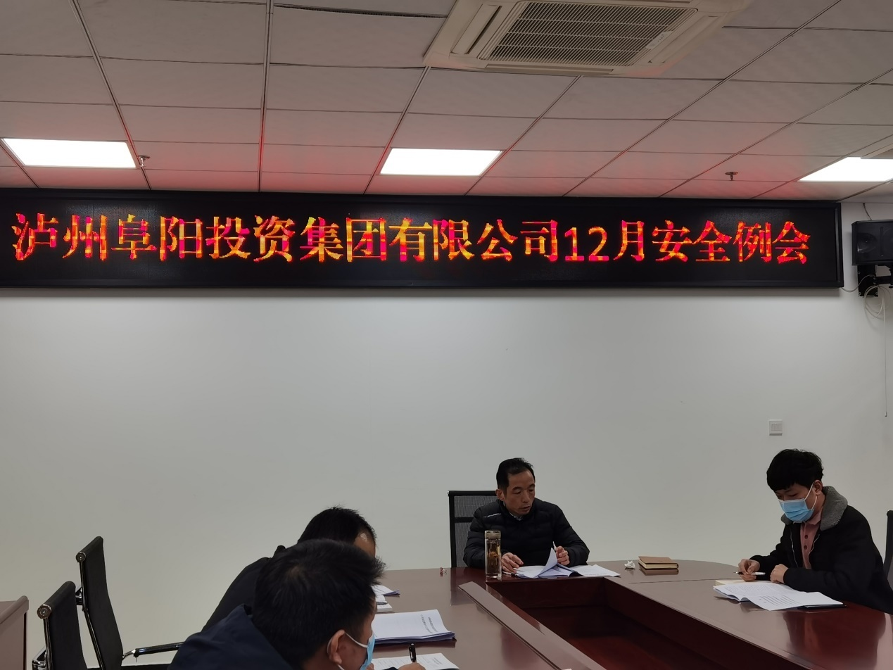 2021 年 12月22日,泸州bsports必一体育投资集团有限公司召开了12月份安全生产例会,胡天华副总经理带领大家学习了近期安全生产会议精神,并观看了火灾案例警示教育片。会上胡总要求各级公司做好平时安全防范工作,把安全生产工作落实到最小单元,落实到操作一线,真正做到知责履责、担责尽责。
