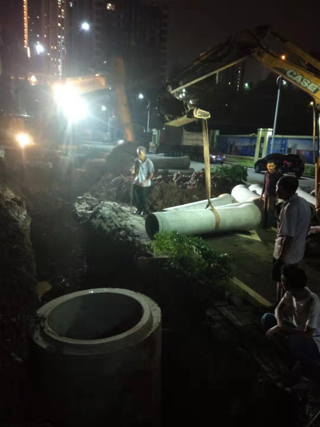 2019年7月15日晚,合江镇菜坝社区军民街因污水管道堵塞导致污水外溢。合江县城市开发投资(集团)有限公司接到通知后,积极响应县综合执法局指令,立即组织施工队伍开展应急抢险施工,经过连夜奋战,完成了排污管道的应急抢修工作,解决了该处化粪池经常因上游水量过大导致污水外溢、污染环境的问题,切实保障了群众生命财产安全。