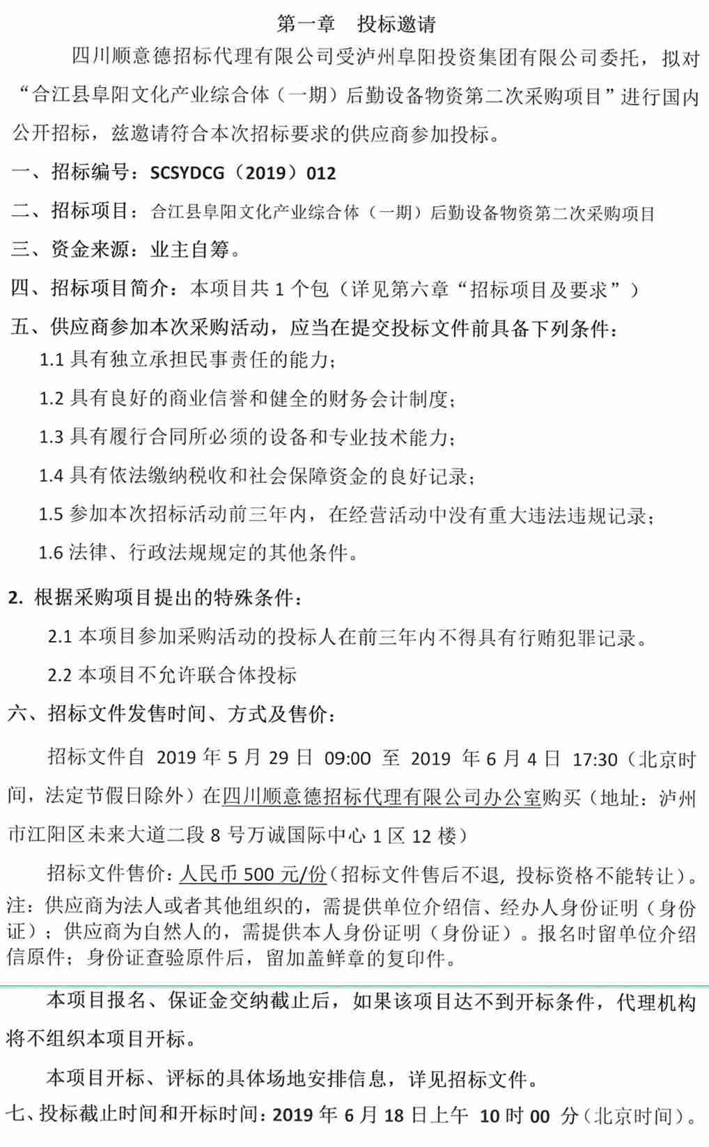 合江县bsports必一体育文化产业综合体(一期)后勤设备物资第二次采购项目
