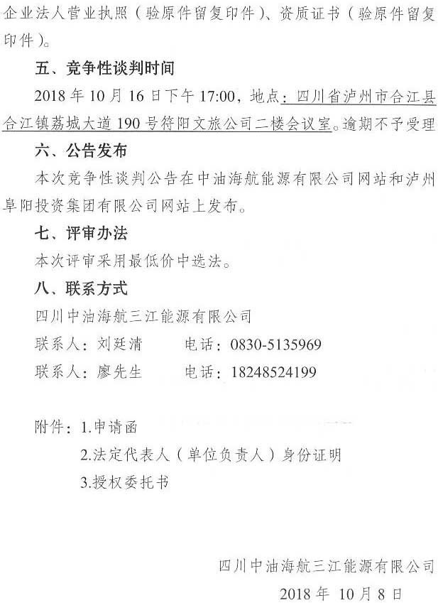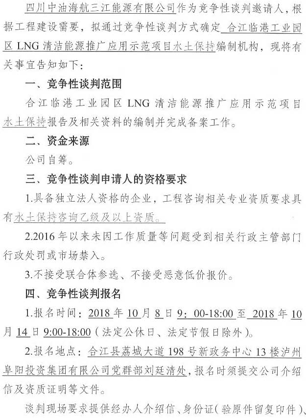 竞争性谈判公告:合江临港工业园区LNG清洁能源推广应用示范项目水土保持报告单位竞争性谈判公告