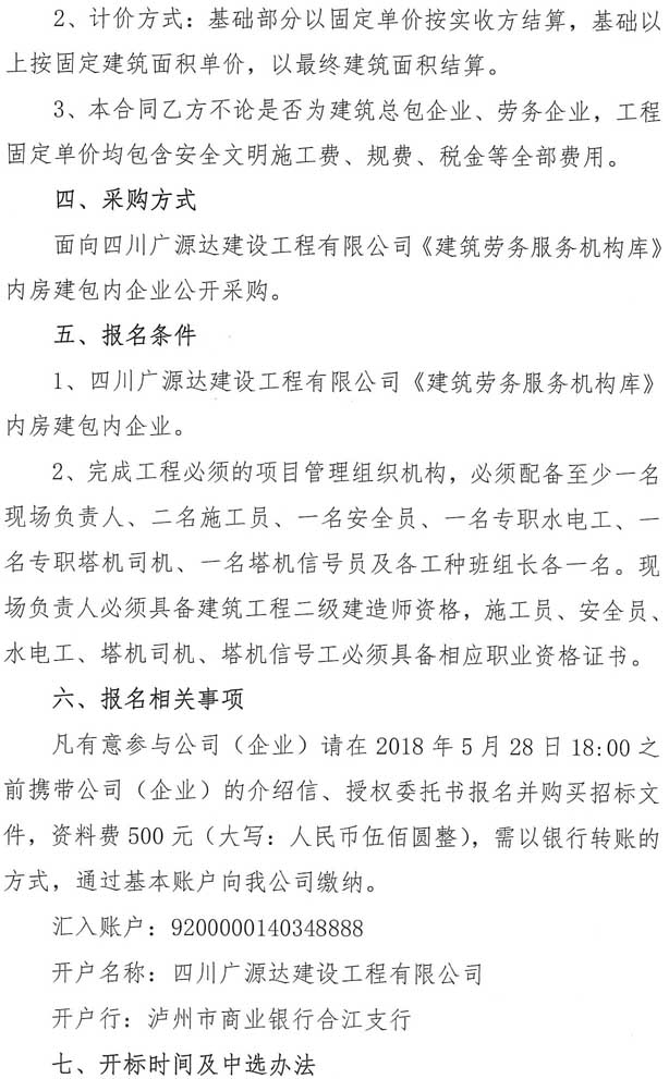四川广源达建设工程有限公司 合江县马街向化厂旧城改造项目劳务分包企业采购公告.doc