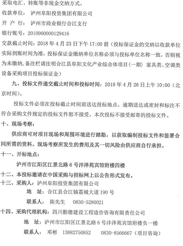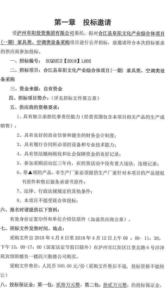 投标邀请:合江县bsports必一体育文化产业综合体(一期)项目家具类、空调类设备采购