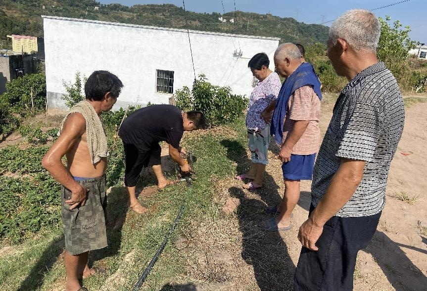 荔江镇一线员工对觉悟村供水用户进行回访, 了解高温天气 用水情况及需要解决的问题
