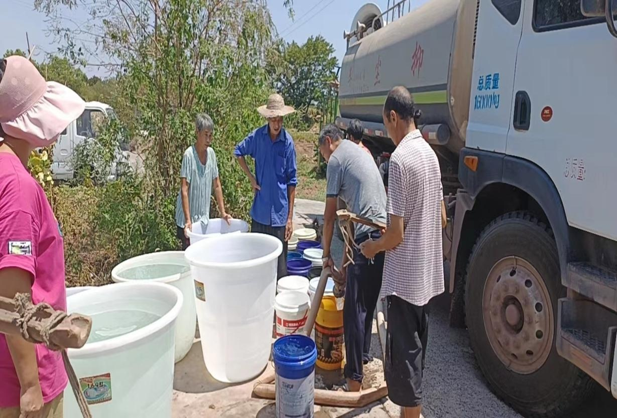 今年8月份以来, 我县出现了持续 40 ℃ 以上的高温干旱 天气 , 导致我县辖区内多地出现干旱、 供水不足、 群众饮水 困 难 等 情 况 。 2022年8月18日中午 , 城投公司供水中心组织会青山村干部, 协调洒水车为大桥镇会青山村缺水群众送 水,确保群众生活用水。