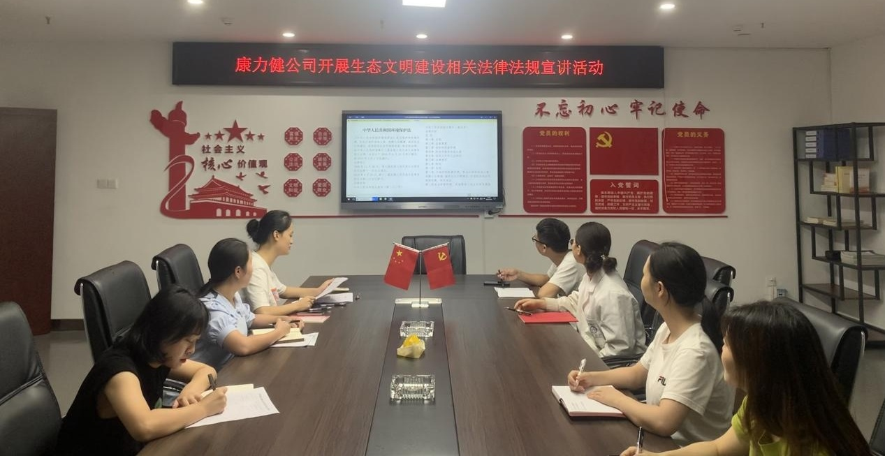 为深入学习贯彻习近平法治思想, 践行 “绿水青山就是 金山银山” 理念, 积极落实 加强生态文明建设和环境保护工 作 的 重 要 要 求 , 2022 年 7 月 20 日 , 康 力 健 公 司 组 织 开 展 了 生态文明建设相关法律法规学习宣传活动。