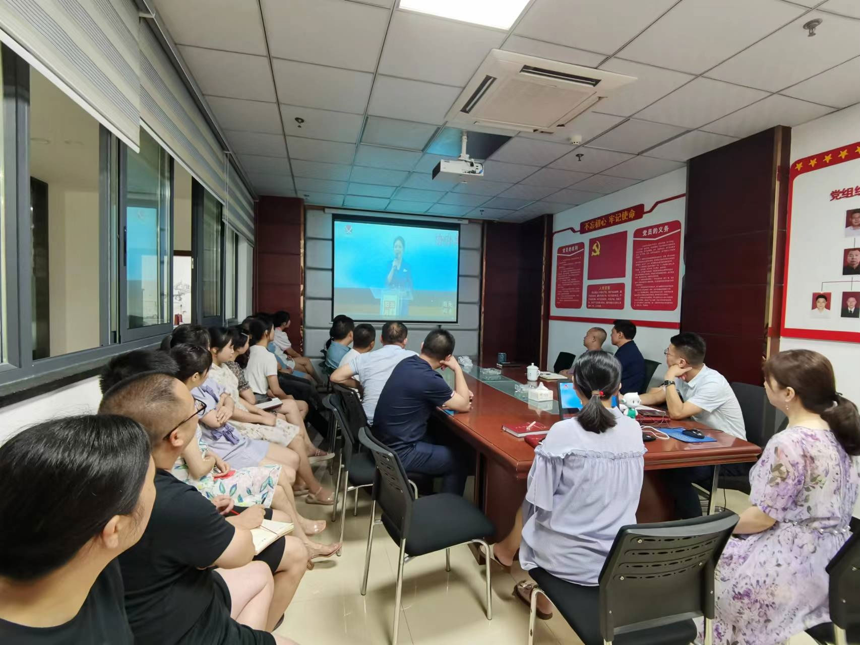 2022 年 7 月 14 日 上 午 , 阜 阳 集 团 党 委 组 织 全 体 员 工 观 看 《 阳 光 问廉》节目,采取集中和分散相结合的形式观看。