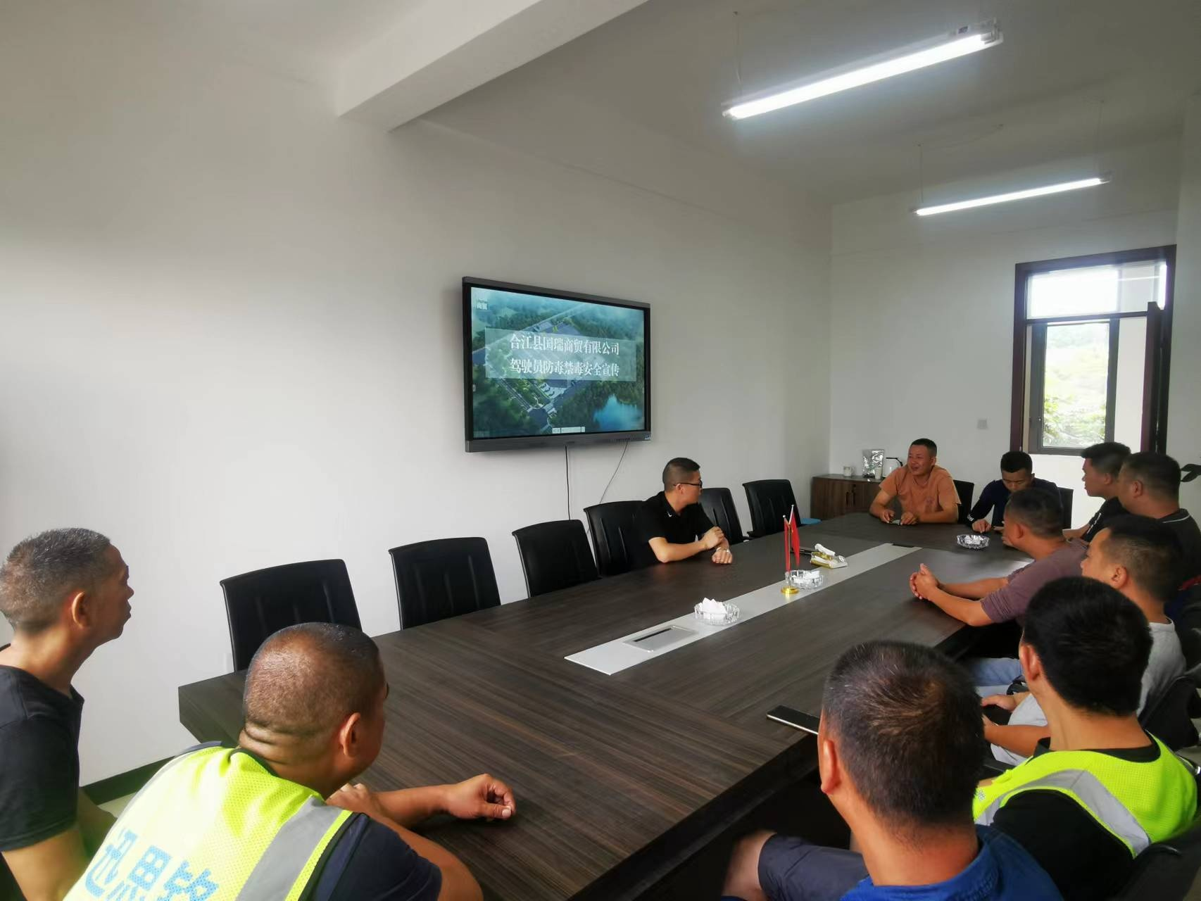 为严防商砼站罐车驾驶员吸毒贩毒, 发生毒驾、 肇事肇 祸 , 做 到 “ 远 离 毒 品 、 拒 绝 毒 驾 ” 。 2022 年 6 月 16 日 , 国 瑞商贸党支部宣传委员(车队长) 王平同志向罐车驾驶员宣 传机动车驾驶员禁毒知识。