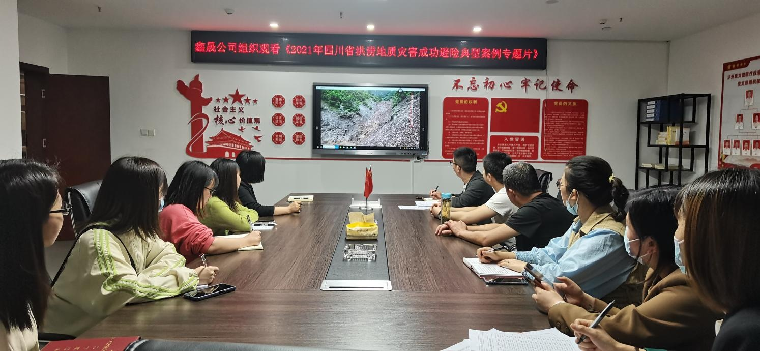 2022 年 5 月 16 日上午, 泸州鑫晟房地产开发有限公司组织公 司 全 体 职 工 观 看 《 2021 年 四 川 省 洪 涝 地 质 灾 害 成 功 避 险 典 型 案 列 专 题 片 》 , 安 排 部 署 公 司 防 汛 工 作 。 一 是 增 强 职 工 防 灾 减 灾 意 识 , 提 高 识 灾 避 灾 能 力 ; 二 是 结 合 公 司 实 际 , 开 展 汛 前 安 全 隐 患 大 检 查 , 强 化 监 管 , 落 实 各 方 防 汛 减 灾 责 任 ; 三 是 严 格 落 实 汛 期 值 班 值守制度。