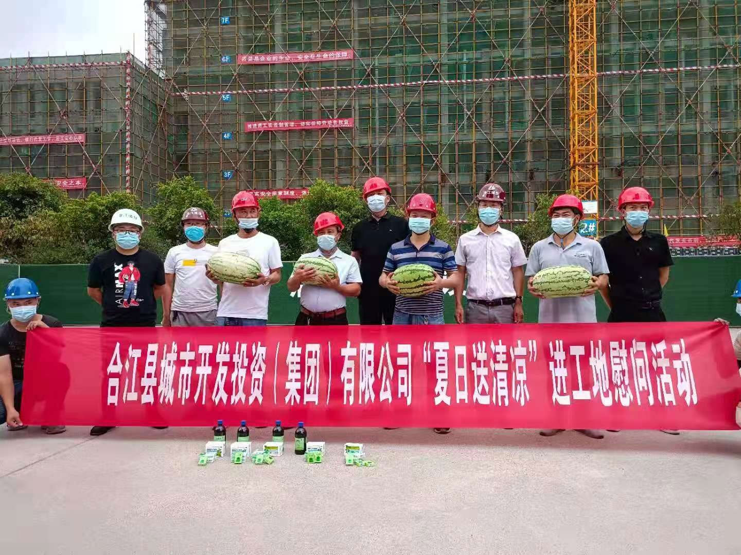 近日,为切实做好防暑降温工作,慰问在一线奋战的建设者们,合江县城市开发投资(集团)有限公司组织开展了“夏日送清凉”进工地慰问活动。公司董事长兼总经理鞠志良同志、副总经理陈磊同志等分别带队前往合江县城区及各乡镇建设项目工地现场,为奋战在一线的工作人员送上了西瓜、藿香正气口服液等防暑物品、药品,同时,也进一步加强防疫知识宣传,让他们在盛夏的酷暑中感受到一份清凉与关怀!