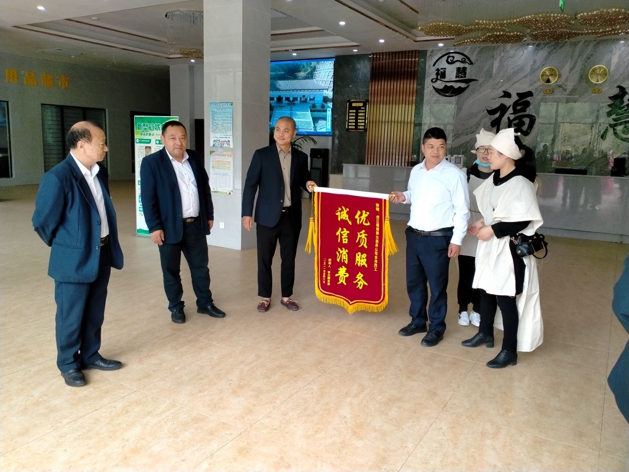 5月6日,家属李正携全家走进合江县福慧殡葬服务有限公司,将一面“诚信消费优质服务”的锦旗送到殡仪服务中心工作人员的手中。