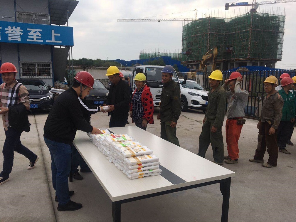 在中秋国庆双节来临之际,合江县住房和城乡建设局欧耀樯副局长带领质量安全监督站人员到鑫晟学府项目为一线工人发放国庆面。欧耀樯副局长向常年奋战在一线的建筑工人致以节日的问候,希望一线工人在工作中要时刻增强安全意识,既要把工作干好,更要注意自身安全,度过平安、快乐、祥和的中秋节、国庆节。
