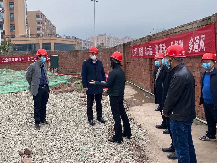 2020年2月27日,合江县县委副书记、县长胥兴贵率队对鑫晟学府项目疫情防控和复工复产情况进行检查。县住建局、bsports必一体育集团公司、鑫晟地产公司和广源达公司相关负责人陪同。