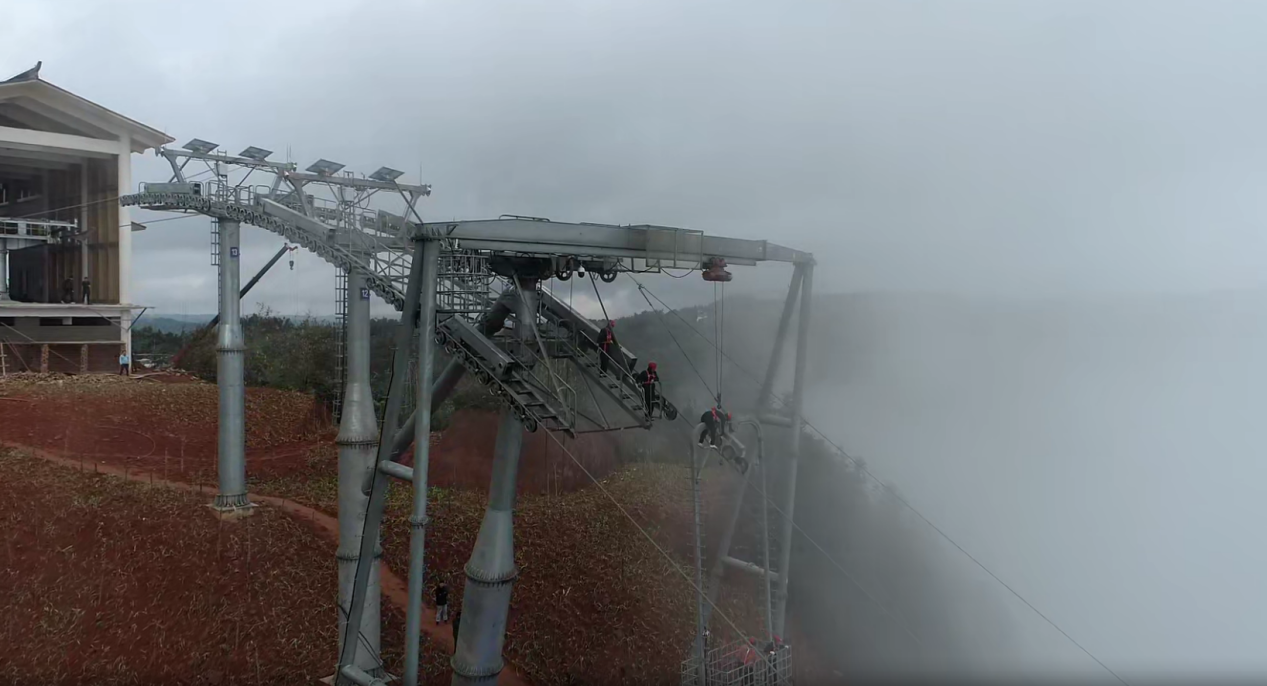 此 次 索 道 水 平 救 援 演 练 模 拟 内 容 为 索 道 9 号 支 架 至 10 号支架之间突发故障, 两名游客被困吊厢等待救援。 上午 9 点 30 分 , 龙 挂 山 景 区 索 道 应 急 救 援 指 挥 部 立 即 启 动 索 道 高 空应急救援预案, 并立刻派遣救援人员赶到事故地点开展营 救。